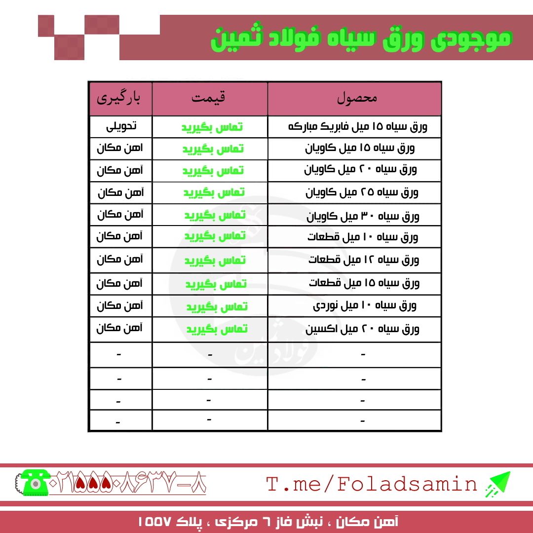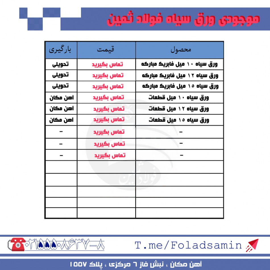 🔵🔵🔵 🔹موجودي آهن مکان ورق 10 میل نوردی عرض 60 ورق 10 میل قطعات ورق 12 میل قطعات ورق 15 میل قطعات سرورق 15 میل قطعات 🔹موجودي اکسین St52 ورق 20 میل 6در 2 م ...