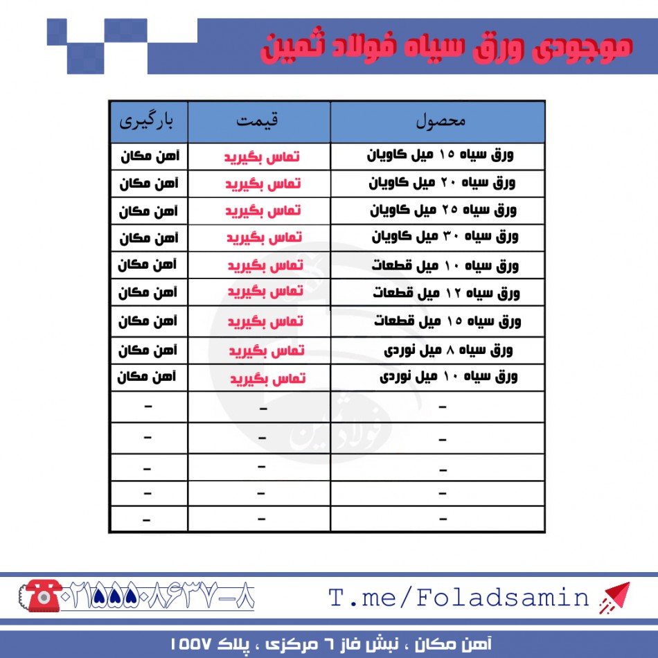 🔵🔵🔵 🔹موجودي آهن مکان ورق 10 میل نوردی عرض 60 ورق 10 میل قطعات ورق 12 میل قطعات ورق 15 میل قطعات سرورق 15 میل قطعات سرورق15 میل اکسین سرورق 20 میل اکسین ...