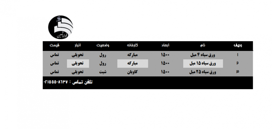 موجودی انبار تهران *ورق 10 میل قطعات* *ورق 15میل قطعات* *ورق 20 میل قطعات* *ورق 15 میل کاویان* *ورق 20 میل کاویان* *ورق 25 میل کاویان*