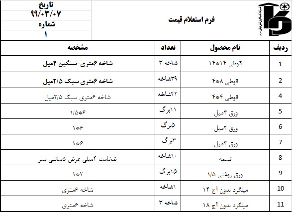 درخواست خرید ورق روغنی (سرد) - RFQ-28446