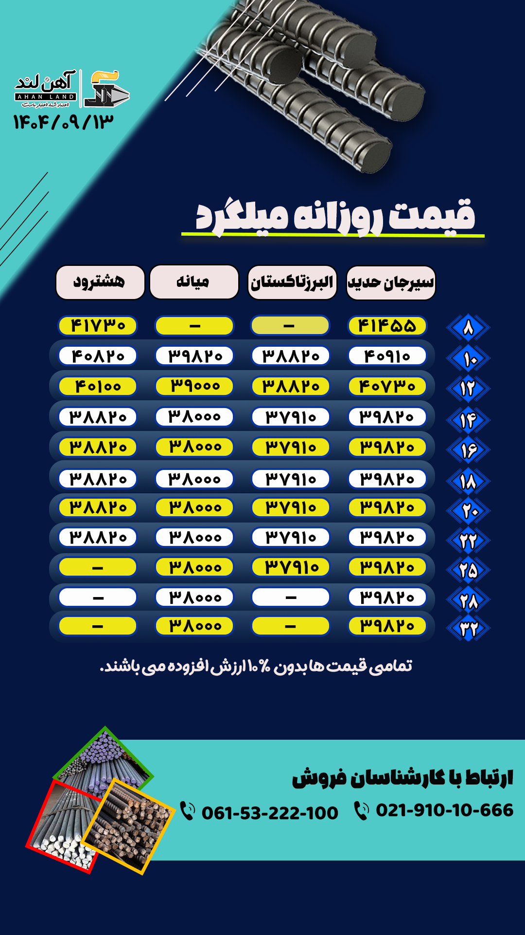 عرضه کننده مستقیم اهن آلات از کارخونه تا مقصد شما❗️❗️❗️ ✅فروش انواع میلگرد در سایز های متنوع با شرایط استثنایی ✅به صورت عمده و ظرفیتی ✅انواع میلگرد ۱۰ و ۱۲ و ۱۴ و ۱۶ و ۱۸ تا ۳۲ ✅انواع خاموت کلاف سیم و … ✅ضمانت اصالت و کیفیت ✅تحویل محصول در کمتر از ۲۴ ساعت ✅ به همراه مشاوره رایگان