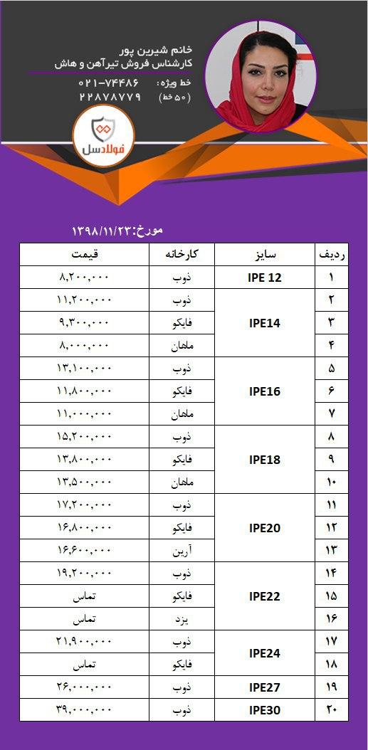 #ناب_تبریز #كارخانه تيرآهن ۱۴ (۱۳۰kg) ____ تیرآهن ۱۶ (۱۶۷kg)____ ۶۵۵۰۰ تیرآهن ۱۸ (۲۰۵kg)____ ۶۵۵۰۰ ۰۲۱۶۶۹۱۱۰۰۷