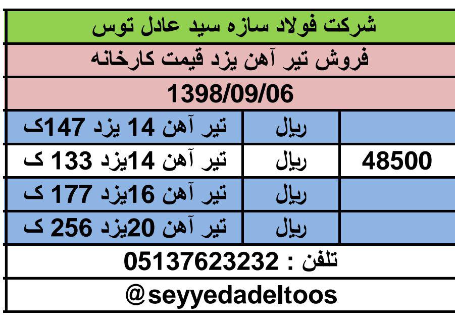 شرکت فولاد سازه سیدعادل توس فروش محصولات کارخانه یزد تیرآهن ۰۹۱۵۱۱۵۱۵۲۰ ۰۵۱۳۷۶۲۳۲۳۲ ۰۵۱۳۷۶۲۱۴۴۰