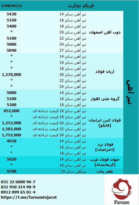 فولاد ناب تبریز : ثابت تیرآهن ۱۴ ۴۸۵۰ تیرآهن ۱۶ ۴۹۵۰ تیرآهن ۱۸ *