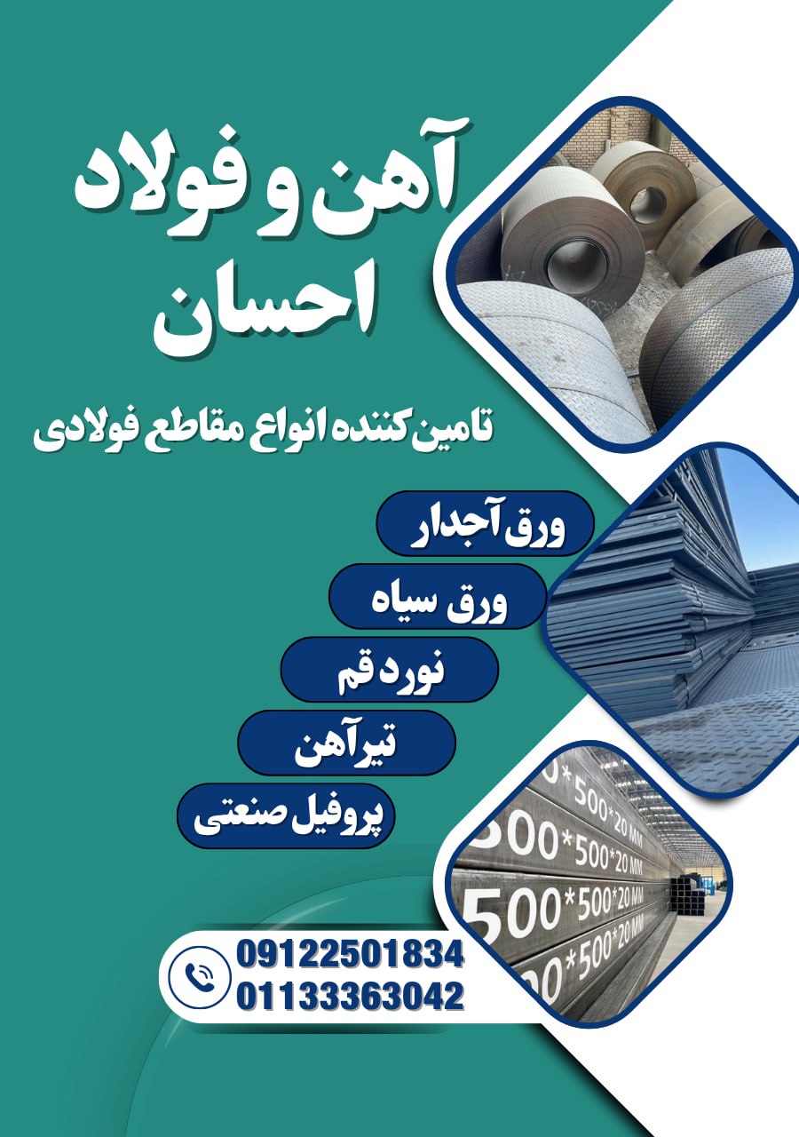 #آهن_فولاد_احسان ✨تامین کننده انواع مقاطع فولادی : ✅ورق آجدار ✅ورق سیاه ✅نورد قم ✅تیرآهن ✅پروفیل صنعتی ارتباط باما : ☎️01133363042 📞09122501834 📞09032011834 تلگرام https://t.me/ehsanahan اینستاگرام https://instagram.com/bazargani.ahan.ehsan2 🍃مشاهده پروفیل آهن و فولاد احسان https://foolad24.com/dashboard/user/14793/edit