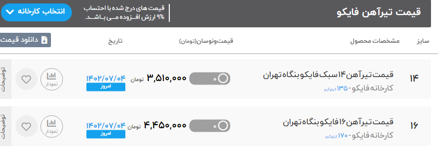 #فیدار_مبین_آژند قیمت_تیرآهن_ذوب آهن_اصفهان (انبار آهن 505) سایز 12 : 3.700.000 سایز 14 : 4.150.000 سایز 16 : 4.750.000 سایز 18 : 5.800.000 سایز 20 : 6.900.000 سایز 22 : 8.150.000 سایز 24 : 9.350.000 سایز 27 : 11.050.000 سایز 30 : 13.700.000 ▪️قیمت_تیرآهن_i7 (انبار آهن 505) سایز 14 : 4.100.000 سایز 16 : 4.700.000 سایز 18: 5.700.000 سایز 20 : 6.800.000 ▪️قیمت_میلگرد_ذوب آهن_اصفهان (انبار آهن 505) سایز 12 : 26.700 سایز 14 : 25.200 سایز 16 : 25.200 سایز 18 : 25.100 سایز 20 : 25.200 سایز 22 : 24.800 سایز 25 : 24.900 سایز 28 : 24.800 سایز 32 : 24.800 ▪️قیمت_میلگرد (انبار آهن 505) سایز 8 : تماس سایز 10 : 25.600 سایز 12 : 25.600 سایز 14 الی 32 : 24.400 ▪️قیمت_نبشی (موجود، انبار آهن 505) سایز 4 ضخامت 3 : 26.000 سایز 5 ضخامت 4 : 25.700 ▪️قیمت_ناودانی (موجود، انبار آهن 505) سایز 8 سنگین: 27.200 سایز 10سنگین: 27.200 سایز 12سنگین: 27.200 سایز 14سنگین: 27.200 سایز 16 سنگین: 27.200 ▪️قیمت_ناودانی (موجود، انبار آهن 505) سایز 8 سنگین: 27.200 سایز 10سنگین: 27.200 سایز 12سنگین: 27.200 سایز 14سنگین: 27.200 سایز 16 سنگین: 27.200 ☎️ +983131505 ✅https://t.me/ahan505fidar 📌https://instagram.com/ahan.505?igshid=MzRlODBiNWFlZA== 🆔https://foolad24.com/dashboard/user/14013 🌐 www.ahan505.com