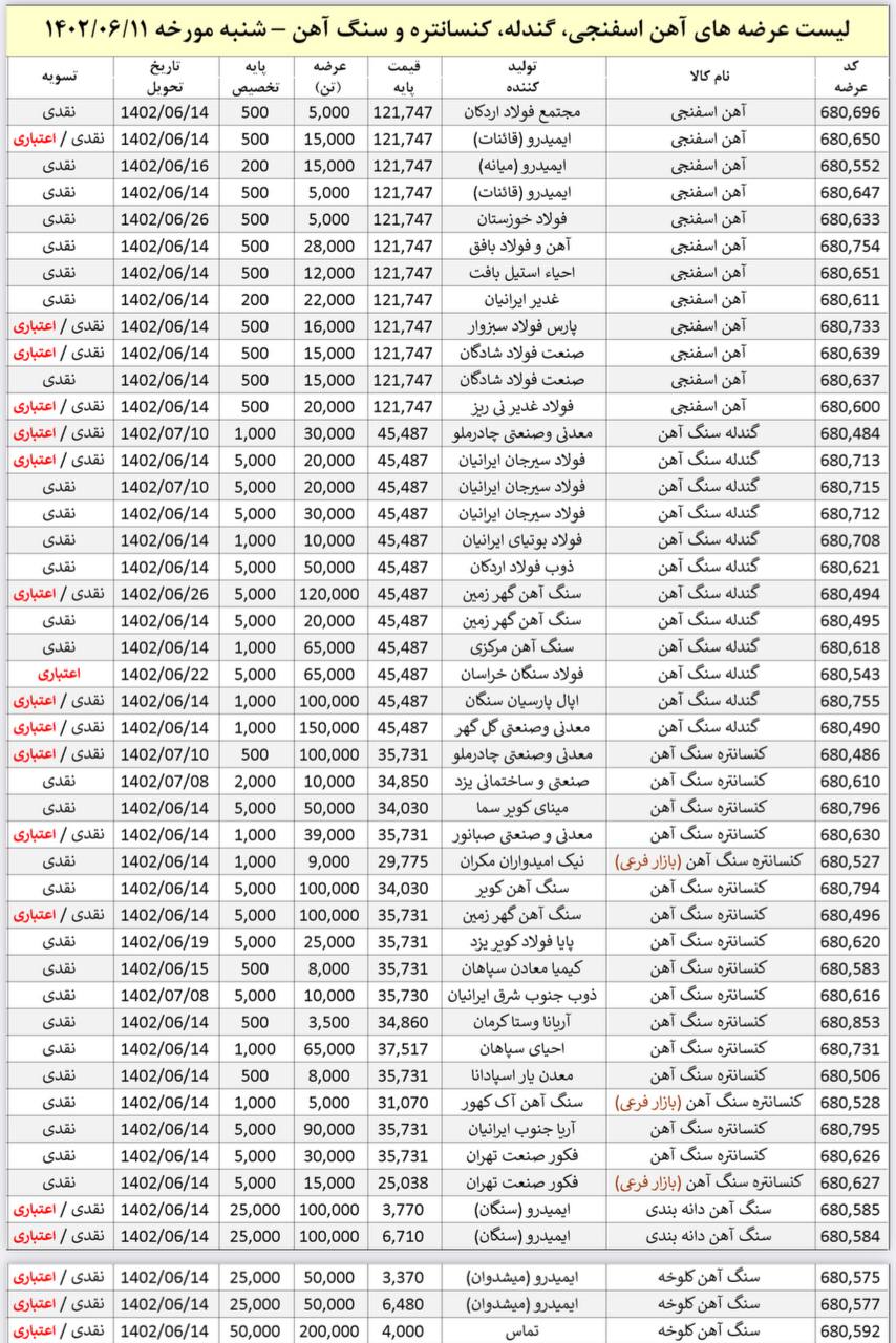 🔸تیرآهن سایز۱۴: ۴۰٫۰۰۰٫۰۰۰﷼ 🔸تیرآهن سایز۱۶: ۴۶.۵۰۰.۰۰۰ ریال 🔸تیرآهن سایز۱۸: ۵۶.۵۰۰.۰۰۰ ریال 🔸تیرآهن سایز۲۰: ۶۸٫۰۰۰٫۰۰۰ریال