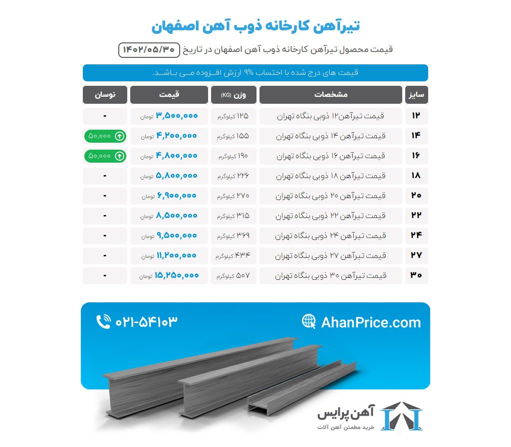 تیرآهن 12↔️ 28100 تومان تیرآهن 14↔️ 27650 تومان تیرآهن 16↔️ 25800 تومان