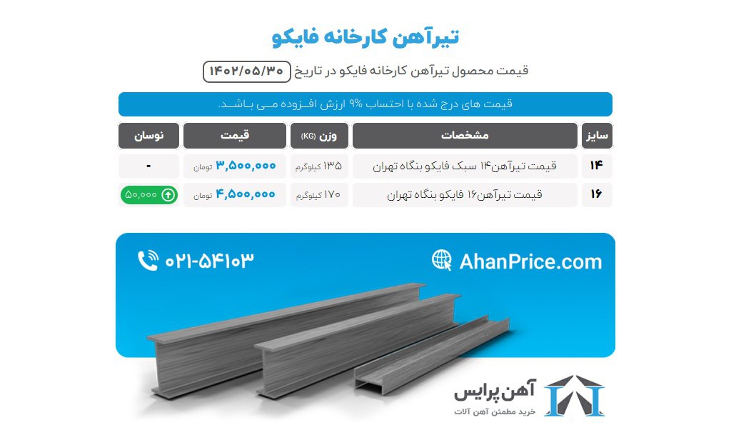 تیرآهن 14↔️ 4.230.000 تومان تیرآهن 16↔️ 4.800.000 تومان