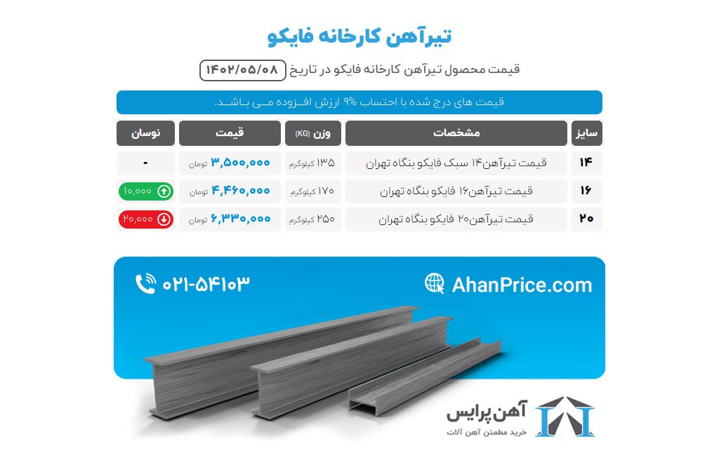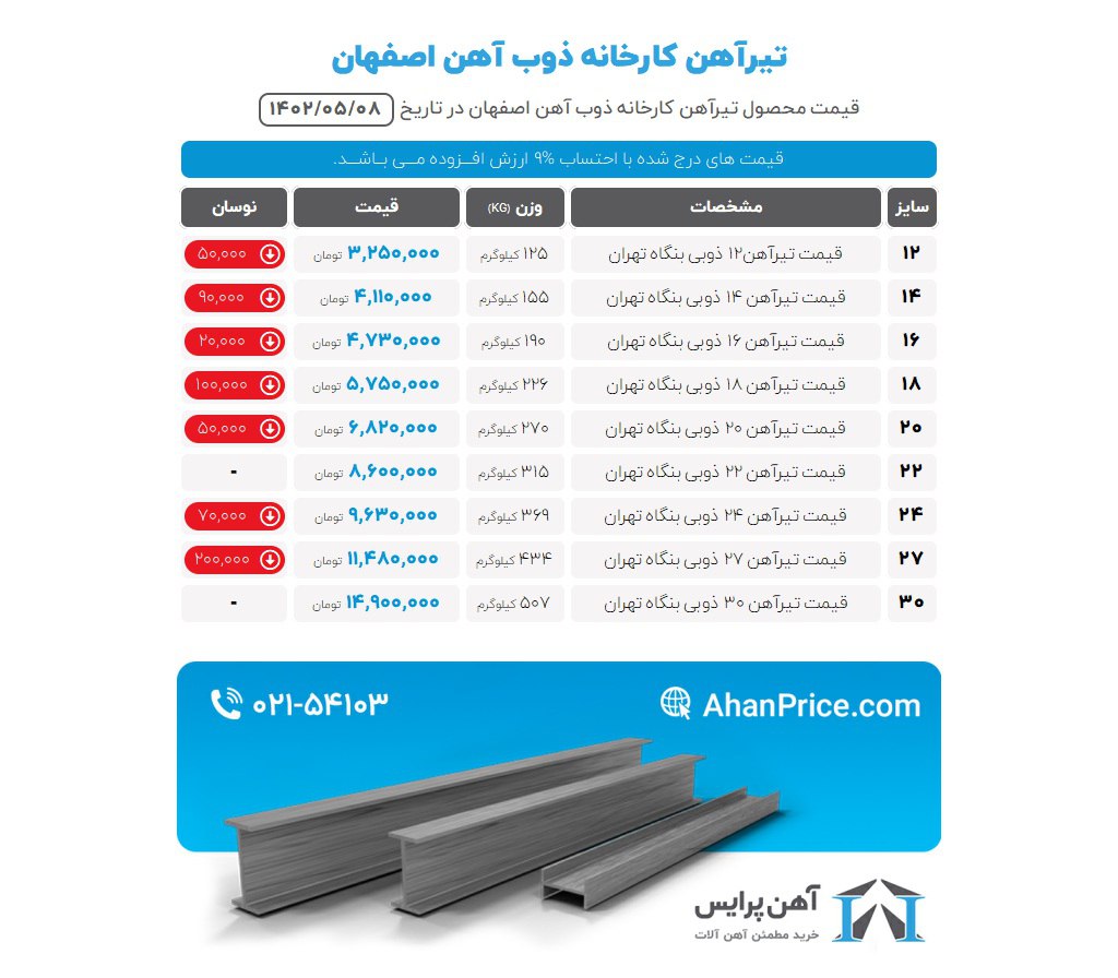 #فولاد_ذوب_آهن_اصفهان (انباراصفهان)🔸تیرآهن سایز۱۲: ۳۳.۰۰۰.۰۰۰ ریال 🔸تیرآهن سایز۱۴: ۴۰.۴۰۰.۰۰۰ ریال 🔸تیرآهن سایز۱۶: ۴۷.۰۰۰.۰۰۰ ریال 🔸تیرآهن سایز۱۸: ۵۷.۰۰۰.۰۰۰ ریال 🔸تیرآهن سایز۲۰: ۶۷.۵۰۰.۰۰۰ ریال 🔸تیرآهن سایز۲۲: ۸۳.۰۰۰.۰۰۰ ریال 🔸تیرآهن سایز۲۴: ۹۵.۰۰۰.۰۰۰ ریال 🔸تیرآهن سایز۲۷: ۱۱۳.۵۰۰،۰۰۰ ریال 🔸تیرآهن سایز۳۰: ۱۴۴.۰۰۰.۰۰۰ریال ☎️ 041-37731232 📱 0914-4222215 #تیر_آهن