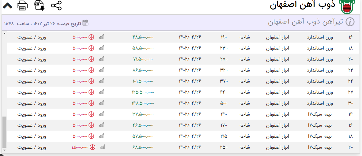 اعلام موجودی تیرآهن (IPE) در انبار دیجی آهن