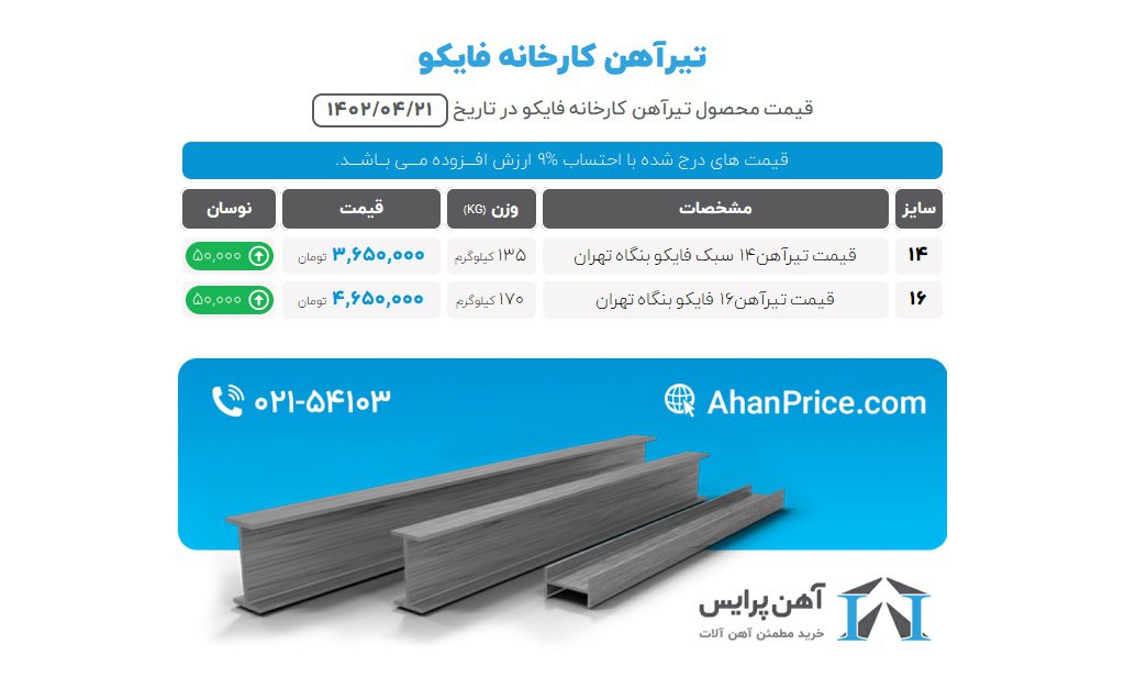 آرمان گستر اقتدار (آهن آرمان) 👈 ضمانت یک خرید مطمئن👉 #قیمت روز انواع #تیرآهن #ترک #وارداتی #هاش #بالپهن #HEB #HEA #IPE 🗓 چهارشنبه، 21 تیر 1402 🗓 . 📢قیمت روز تیرآهن بال پهن HEB سنگین (هرکیلوگرم) از انبار تهران📢 🔸 تیرآهن 100 (وزن هر شاخه 240 کیلو): 570.000 ریال 🔸 تیرآهن 120 (وزن هر شاخه 320 کیلو): 570.000 ریال 🔸 تیرآهن 140 (وزن هر شاخه 400 کیلو): 290.000 ریال 🔸 تیرآهن 160 (وزن هر شاخه 500 کیلو): 310.000 ریال 🔸 تیرآهن 180 (وزن هر شاخه 590 کیلو): 310.000 ریال 🔸 تیرآهن 200 (وزن هر شاخه 730 کیلو): 350.000 ریال 🔸 تیرآهن 220 (وزن هر شاخه 850 کیلو): 630.000 ریال 🔸 تیرآهن 240 (وزن هر شاخه 998 کیلو): 630.000 ریال 🔸 تیرآهن 260 (وزن هر شاخه 1120 کیلو): 660.000 ریال 🔸 تیرآهن 280 (وزن هر شاخه 1240 کیلو): 660.000 ریال 🔸 تیرآهن 300 (وزن هر شاخه 1400 کیلو): 630.000 ریال 🔸 تیرآهن 320 (وزن هر شاخه 1524 کیلو): 660.000 ریال 🔸 تیرآهن 340 (وزن هر شاخه 1608 کیلو): 700.000 ریال 🔸 تیرآهن 360 (وزن هر شاخه 1704 کیلو): 700.000 ریال 🔸 تیرآهن 400 (وزن هر شاخه 1860 کیلو): 700.000 ریال 🔸 تیرآهن 450 (وزن هر شاخه 2052 کیلو): 700.000 ریال 🔸 تیرآهن 500 (وزن هر شاخه 2244 کیلو): 700.000 ریال 🔸 تیرآهن 550 (وزن هر شاخه 2388 کیلو): 700.000 ریال 🔸 تیرآهن 600 (وزن هر شاخه 2544 کیلو): 700.000 ریال 🔸 تیرآهن 650 (وزن هر شاخه 2700 کیلو): 700.000 ریال 🔸 تیرآهن 700 (وزن هر شاخه 2892 کیلو): 700.000 ریال 🔸 تیرآهن 800 (وزن هر شاخه 3144 کیلو): 700.000 ریال 🔸 تیرآهن 900 (وزن هر شاخه 3492 کیلو): 700.000 ریال 🔸 تیرآهن 1000 (وزن هر شاخه 3768 کیلو): 700.000 ریال ~~~~~~~~~~~~~~~~~~ 📢قیمت روز تیرآهن بال پهن HEA سبک (هرکیلوگرم) از انبار تهران📢 🔸 تیرآهن 100 (وزن هر شاخه 200 کیلو): 570.000 ريال 🔸 تیرآهن 120 (وزن هر شاخه 240 کیلو): 570.000 ريال 🔸 تیرآهن 140 (وزن هر شاخه 295 کیلو): 300.000 ريال 🔸 تیرآهن 160 (وزن هر شاخه 360 کیلو): 310.000 ريال 🔸 تیرآهن 180 (وزن هر شاخه 425 کیلو): 310.000 ريال 🔸 تیرآهن 200 (وزن هر شاخه 510 کیلو): 410.000 ريال 🔸 تیرآهن 220 (وزن هر شاخه 610 کیلو): 660.000 ريال 🔸 تیرآهن 240 (وزن هر شاخه 720 کیلو): 660.000 ريال 🔸 تیرآهن 260 (وزن هر شاخه 820 کیلو): 660.000 ريال 🔸 تیرآهن 280 (وزن هر شاخه 920 کیلو): 660.000 ريال 🔸 تیرآهن 300 (وزن هر شاخه 1050 کیلو): 660.000 ريال 🔸 تیرآهن 320 (وزن هر شاخه 1170 کیلو): 660.000 ریال 🔸 تیرآهن 340 (وزن هر شاخه 1260 کیلو): 660.000 ریال 🔸 تیرآهن 360 (وزن هر شاخه 1344 کیلو): 700.000 ریال 🔸 تیرآهن 400 (وزن هر شاخه 1500 کیلو): 700.000 ریال 🔸 تیرآهن 450 (وزن هر شاخه 1680 کیلو): 700.000 ریال 🔸 تیرآهن 500 (وزن هر شاخه 1860 کیلو): 700.000 ریال 🔸 تیرآهن 550 (وزن هر شاخه 1992 کیلو): 700.000 ریال 🔸 تیرآهن 600 (وزن هر شاخه 2136 کیلو): 700.000 ریال 🔸 تیرآهن 650 (وزن هر شاخه 2280 کیلو): 700.000 ریال 🔸 تیرآهن 700 (وزن هر شاخه 2448 کیلو): 700.000 ریال 🔸 تیرآهن 800 (وزن هر شاخه 2688 کیلو): 700.000 ریال 🔸 تیرآهن 900 (وزن هر شاخه 3024 کیلو): 700.000 ریال 🔸 تیرآهن 1000 (وزن هر شاخه 3264 کیلو): 700.000 ریال ~~~~~~~~~~~~~~~~~~ ☎️۰۲۱-۵۸۳۳۶ داخلی 115 خانم گل پرور 🌐www.ahanarman.com وب سایت @AhanArmanPrice🆔 کانال قیمت روز تلگرام