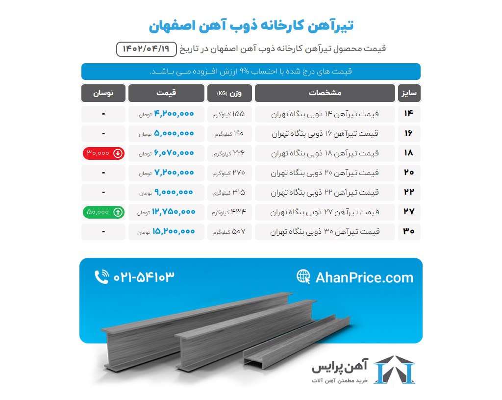 اعلام موجودی تیرآهن آهن یاب سه شنبه 20 تیر ماه 1402 #قیمت_تیراهن_ظفربناب📢برای مشاهده قیمت تیرآهن ظفربناب کلیک کنید (https://aradahan.com/product/tirahan-zafar-bonab)👉🏻👉🏻 ⏺بدون تغییر قیمت نسبت به دیروز ♦️بازار آهن در دستان شماست♦️