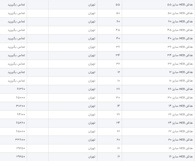 ⚜️آهن آلات تفرشی⚜️ 🔰انواع تیرآهن بال پهن #هاش_سبک HEA #هاش_سنگینHEB#هاش_۱۰_سبک 65000 #هاش_۱۰_سنگین 65000 #هاش_۱۲_سبک 65000 #هاش_۱۲_سنگین 65000 #هاش_۱۴_سبک 31000 #هاش_۱۴_سنگین 31000 #هاش_۱۶_سبک 33000 #هاش_۱۶_سنگین 31500 #هاش_۱۸_سبک 31500 #هاش_۱۸_سنگین 30000 #هاش_۲۰_سبک 34000 #هاش_۲۰_سنگین 37000 #هاش_۲۲_سبک 73000 #هاش_۲۲_سنگین 73000 #هاش_۲۴_سبک 73000 #هاش_۲۶_سبک 72000 #هاش_۳۰_سبک 71000 #هاش_۳۰_سنگین 73000 #هاش_۳۴_سبک تماس #هاش_۳۶_سبک تماس #هاش_۴۰_سنگین تماس #هاش_۴۵_سنگین تماس#تیرآهن_سنگین #تیرآهن_33. موجود #تیرآهن_40. موجود #تیرآهن_45. موجود #تیرآهن_50. موجود #تیرآهن_60. موجود 🛑📣قیمت نهایی هنگام خرید☎️تلفن های فروش021-36056858 021-36059404 09120684754@ahansakhteman