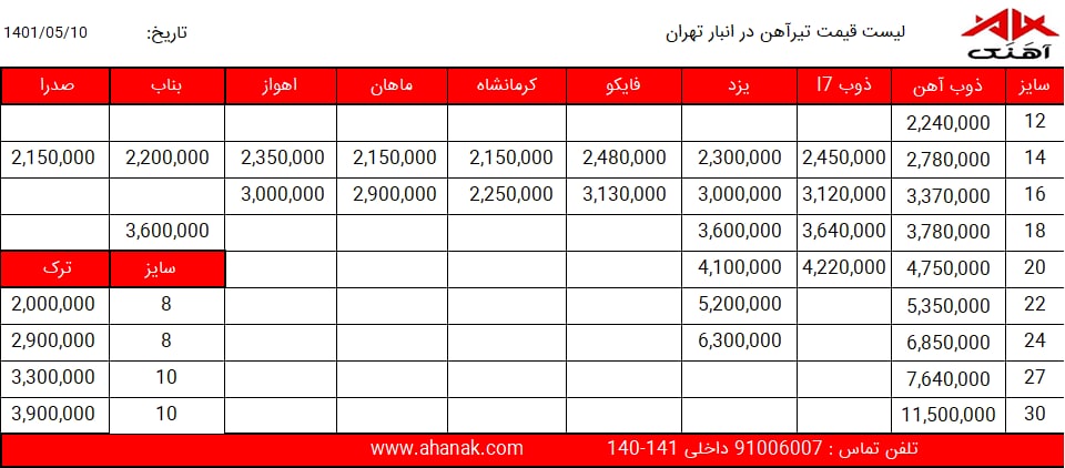 قیمت تیر آهن در انبار تهران شرکت آهنک پردیس ایرانیان تماس 02191006007 داخلی 140-141