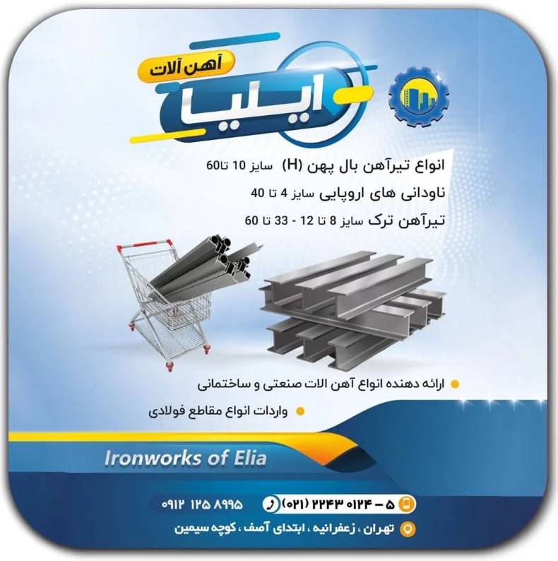 ✳️آهن آلات #ایلیا 🔹ارائه دهنده انواع آهن آلات صنعتی و ساختمانی 🔸انواع تیرآهن بال پهن (H) سایز 10 تا 60 🔹ناودانی های اروپایی سایز 4 تا 40 🔸تیرآهن ترک سایز 8 تا 12 و 33 تا 60 🔹واردات انواع مقاطع فولادی 📱09121258995 ☎️021-22430124 ☎️021-22430125 ☎️021-22430126 🆔http://telegram.me/ilyaziron 📌https://foolad24.com/profile/13437