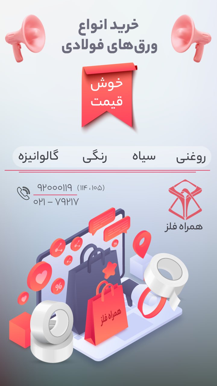 ⚜️#همراه_فلز_آسیا ⚜️ ❇️تهیه و تامین انواع ورق های فولاد ی و استیل 💠ورق روغنی 💠ورق سیاه 💠ورق گالوانیزه 💠انواع مقاطع طویل (تیر آهن و میلگرد و نبشی و ناودانی و پروفیل و لوله ) انواع استیل #جهت_مشاهده_پروفایل_همراه_فلز_آسیا https://foolad24.com/profile/10985 #جهت_مشاهده_اعلام_موجودی_همراه_فلز_آسیا https://foolad24.com/profile/10985/inventory 🔆فروش آنلاین و تلفنی به قیمت کارخانه می کوشیم، اعتمادی پولادین بسازیم. بخش فروش : 📲 09122376560 📲 09129097493 📲کارشناس خرید: 09195163461 📞02179217 📞02192000119 https://hamrahfelez.org 🌐https://t.me/hamrahfelez 🌐https://instagram.com/hamrahfelez