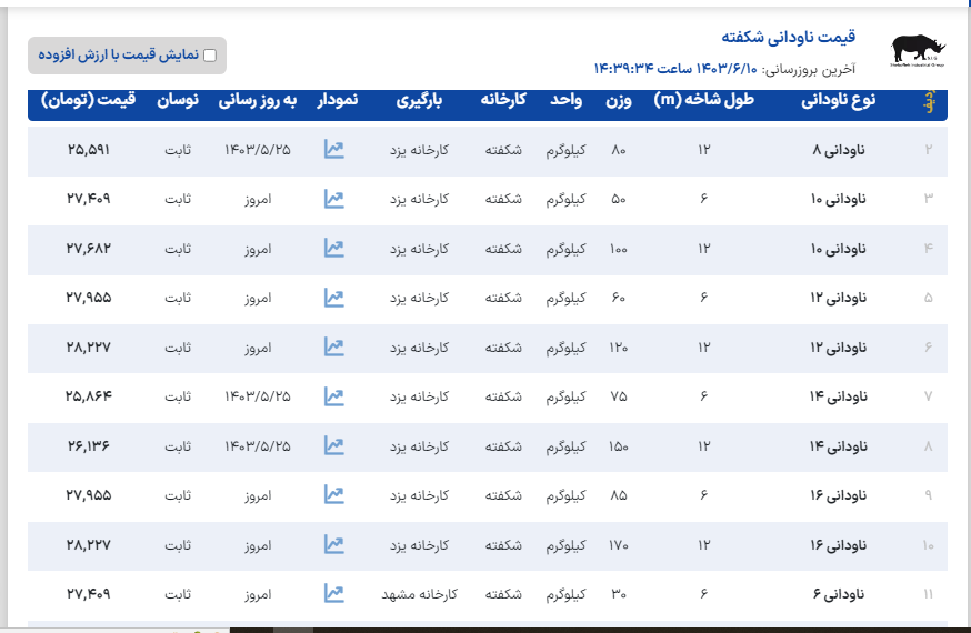 ﷽ آهن ایران 📣قیمت نبشی آرین 🚚بارگیری از کارخانه پنج شنبه 8 شهریور ...................................................................................................................................... نبشی4گوشت3👈30.250 نبشی4گوشت4👈29.350 نبشی5گوشت5👈29.300 نبشی6گوشت5👈29.300 نبشی6گوشت6👈29.300 نبشی7گوشت7👈30.100 نبشی8گوشت8👈29.300 نبشی10گوشت10👈30.000 نبشی12گوشت12👈30.000 ✅فروش یکماهه با چک معتبر ثبتی ✅کلیه قیمتها با احتساب 10% مالیات بر ارزش افزوده می باشد ........................................................................................................................................ ☎️031-33330900☎️ دفتر مرکزی اصفهان ☎️031-33330400☎️ آهن ایران