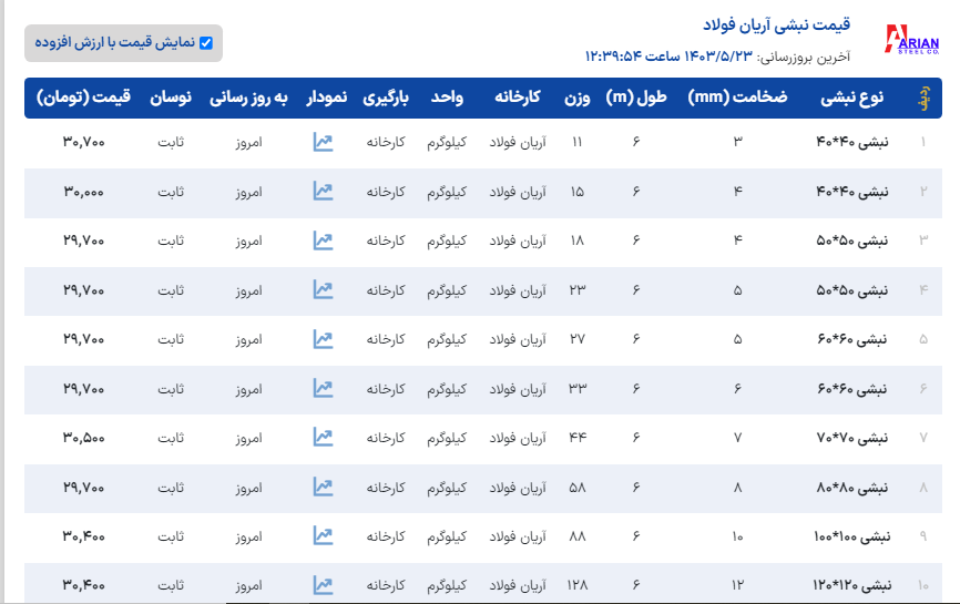 نبشی و ناودانی | اعلام موجودی و قیمت‌ها - فولاد 24