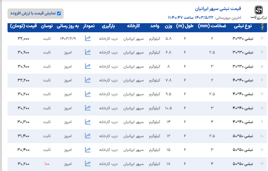 شرکت_تینا گستر حدید لیست نبشی و ناودانی انبار تهران #نبشی_سپهر نشی 4 گوشت 3 سپهر(۹ کیلو)📞 #نبشی_آیهان نشی ۳ گوشت ۲/۵ آیهان:📞 نشی 4 گوشت 3 آیهان(۹ کیلو)📞 #نبشی_پارسه نبشی۴ گوشت۳ پارسه( 8/5 کیلو) 📞 نبشی ۴ گوشت۳(۹/۵ کیلو)📞 #نبشی_ظهوریان نبشی ۳ گوشت۳ ظهوریان:📞 نبشی ۴ گوشت ۳ ظهوریان:📞 نبشی ۵ گوشت ۳ ظهوریان:📞 نبشي ٨ گوشت ۷ ظهوریان: 📞 #نبشی_شکفته نبشی ۳ گوشت ۳ شکفته:📞 نبشی ۲/۵ شکفته:📞 #نبشی_آریان_فولاد نبشی ۴ گوشت ۳ آریان فولاد:📞 نبشی ۴ گوشت ۴ آریان فولاد:📞 نبشی۵ گوشت ۴ آریان فولاد:📞 نبشی ۵ گوشت ۵ آریان فولاد:📞 نبشی ۶ گوشت ۵ آریان فولاد:📞 نبشی ۶ گوشت ۶ آریان فولاد:📞 نبشی ۷ گوشت ۷ آریان فولاد:📞 نبشی ۸ گوشت ۸ آریان فولاد:📞 نبشی ۱۰ گوشت ۱۰ آریان فولاد:📞 نبشی ۱۲ گوشت ۱۲ آریان فولاد:📞 نبشی ۱۵ گوشت ۱۵ آریان فولاد:📞 #نبشی_دهشير_يزد نبشی 8 گوشت 8 دهشیر یزد:📞 نبشی ۱۰ گوشت ۱۰ دهشیر یزد:📞 #نبشي_لقمه نبشی لقمه ۸ * ٨ :📞 نبشي لقمه ١٠* ١٠ :📞