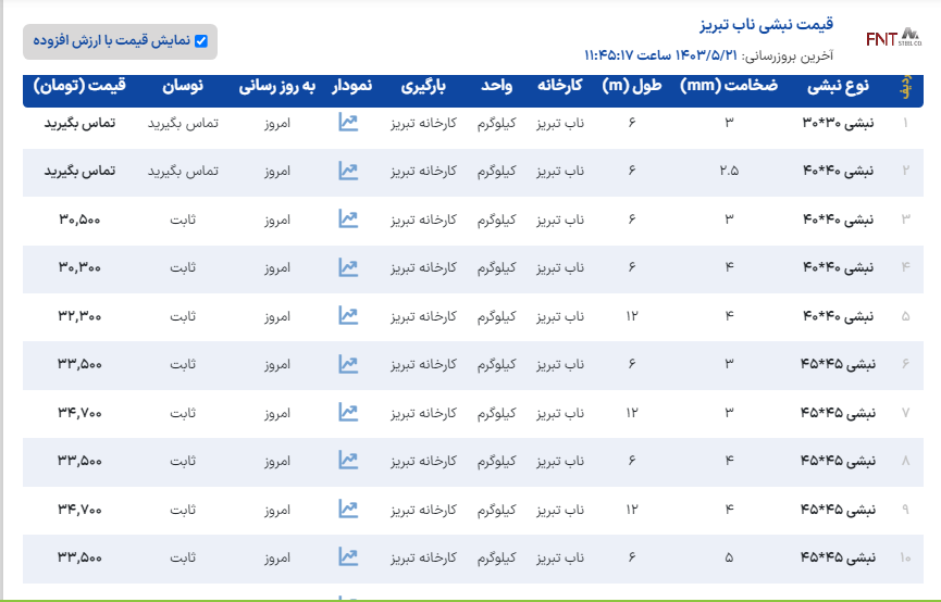 شرکت_تینا گستر حدید لیست نبشی و ناودانی انبار تهران #نبشی_سپهر نشی 4 گوشت 3 سپهر(۹ کیلو)📞 #نبشی_آیهان نشی ۳ گوشت ۲/۵ آیهان:📞 نشی 4 گوشت 3 آیهان(۹ کیلو)📞 #نبشی_پارسه نبشی۴ گوشت۳ پارسه( 8/5 کیلو) 📞 نبشی ۴ گوشت۳(۹/۵ کیلو)📞 #نبشی_ظهوریان نبشی ۳ گوشت۳ ظهوریان:📞 نبشی ۴ گوشت ۳ ظهوریان:📞 نبشی ۵ گوشت ۳ ظهوریان:📞 نبشي ٨ گوشت ۷ ظهوریان: 📞 #نبشی_شکفته نبشی ۳ گوشت ۳ شکفته:📞 نبشی ۲/۵ شکفته:📞 #نبشی_آریان_فولاد نبشی ۴ گوشت ۳ آریان فولاد:📞 نبشی ۴ گوشت ۴ آریان فولاد:📞 نبشی۵ گوشت ۴ آریان فولاد:📞 نبشی ۵ گوشت ۵ آریان فولاد:📞 نبشی ۶ گوشت ۵ آریان فولاد:📞 نبشی ۶ گوشت ۶ آریان فولاد:📞 نبشی ۷ گوشت ۷ آریان فولاد:📞 نبشی ۸ گوشت ۸ آریان فولاد:📞 نبشی ۱۰ گوشت ۱۰ آریان فولاد:📞 نبشی ۱۲ گوشت ۱۲ آریان فولاد:📞 نبشی ۱۵ گوشت ۱۵ آریان فولاد:📞 #نبشی_دهشير_يزد نبشی 8 گوشت 8 دهشیر یزد:📞 نبشی ۱۰ گوشت ۱۰ دهشیر یزد:📞 #نبشي_لقمه نبشی لقمه ۸ * ٨ :📞 نبشي لقمه ١٠* ١٠ :📞