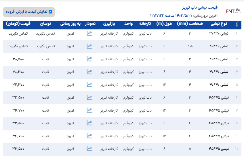 #برشكاري #نبشي #ناوداني #انبار_تهران 🔹نبشي ٦ ابعادي ۳۰۷،۰۰۰﷼ 🔹نبشي ٨ ابعادی ۳۰۷،۰۰۰﷼ 🔹نبشي ١٠ ابعادي ۳۰۷،۰۰۰﷼ 🔹نبشي ١٢ ابعادي ۳۱۷،۰۰۰﷼ 🔹نبشي ١٥ ابعادي ۳۷۰،۰۰۰﷼ تخفیف در صورت پول پیش ✨✨✨✨✨✨✨✨✨✨ ✅كليه محصولات طبق سفارش دلخواه برش داده ميشود ۰۲۱۵۵۵۰۸۰۰۲- ۰۹۱۲۳۰۰۸۰۶۷ امیررستمی