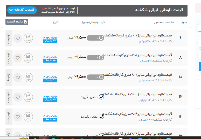 ✔️ ناودانی سنگین اروپایی ۶ و ۱۲ متری ناودانی ۴ اروپایی ۵۸۰،۰۰۰ ناودانی ۶/۵ اروپایی ۶۷۰،۰۰۰ ناودانی ۳۰ اروپایی ۷۰۰،۰۰۰ ناودانی ۴۰ اروپایی ۷۳۰،۰۰۰ ناودانی ۸ هم وزن اروپایی ۳۴۰،۰۰۰ ناودانی ۱۰ هم وزن اروپایی ۳۳۵،۰۰۰ ناودانی ۱۲ هم وزن اروپایی ۳۴۰،۰۰۰ ناودانی ۱۴ هم وزن اروپایی ۳۳۵،۰۰۰ ناودانی ۱۶ هم وزن اروپایی ۳۴۰،۰۰۰ ناودانی ۱۸ هم وزن اروپایی ۴۳۰،۰۰۰ ناودانی ۲۰ هم وزن اروپایی ۳۳۰،۰۰۰ ناودانی ۲۲ هم وزن اروپایی ۴۴۵،۰۰۰ ناودانی ۲۴ هم وزن اروپایی ۳۵۵،۰۰۰ ناودانی ۲۶ هم وزن اروپایی ۴۹۵،۰۰۰ ناودانی ۲۸ هم وزن اروپایی ۵۹۵،۰۰۰ 🔻 قیمت ها با تایید می باشد 🔻 تمامی تیرآهن ها و ستونی ها به صورت شاخه ۱۲ متر می باشد 🔻 اقلام به شرط مشکی و سلامت به فروش میرسد 🔻 انبار تهران ( خیابان ستاره و انبار مرتضی ) ☎️ ۰۲۱-۵۵۵۳۴۲۲۹ 📱 ۰۹۱۲۰۲۳۷۱۲۲ 🌐 @tejaratdamir