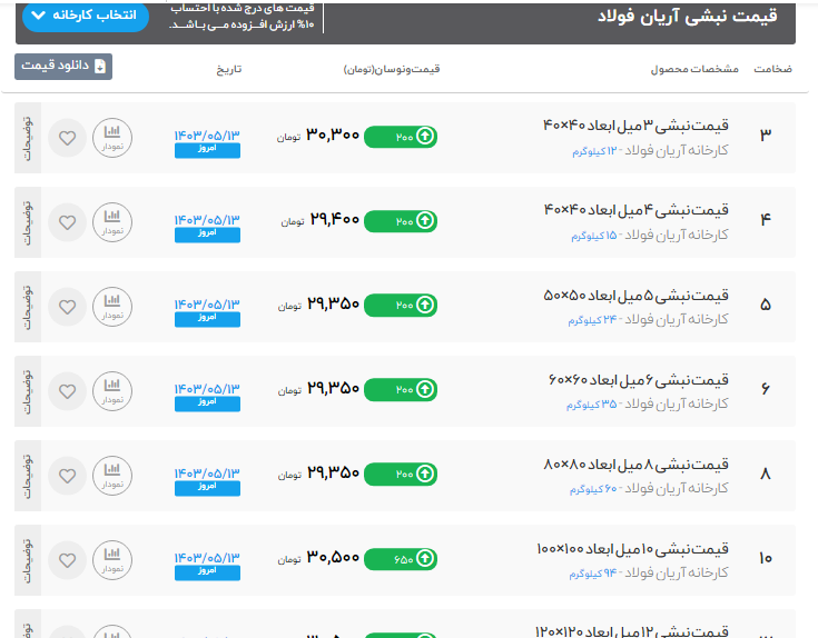 #آریان_فولاد نبشی 3*۴ »304000««« نبشی ۴*۴ »»295000««« نبشی ۴*۵ »»294500««« نبشی ۵*۵ »»294500««« نبشی ۶*۶ »»» 294500««« نبشی ۷*۷ »»302500««« نبشی ۸*۸»»»294500««« نبشی ۱۰*۱۰ «««301500««« نبشی ۱۲*۱۲ »»301500««« نبشی ۱۵*۱۵ »» call ««« #آریان_فولاد 🟩🟩🟩 ✅کلیه محصولات ذکر شده دارای تاییده موجودی و قیمت میباشند. ❇️برای ثبت سفارش خود تماس حاصل فرمایید. ✅با فاکتور رسمی 🔱آهن آلات مجید حیدری🔱 ☎️021-55446006-9 📱09121168151