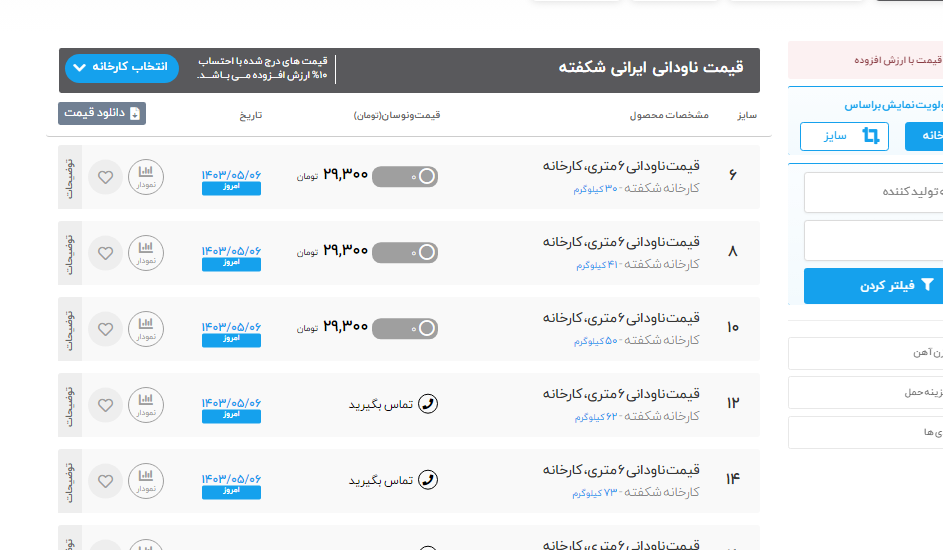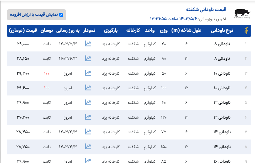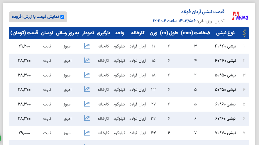 #آریان_فولاد نبشی 3*۴ »294000««« نبشی ۴*۴ »»285000««« نبشی ۴*۵ »»284500««« نبشی ۵*۵ »»284500««« نبشی ۶*۶ »»» 284500««« نبشی ۷*۷ »»292500««« نبشی ۸*۸»»»284500««« نبشی ۱۰*۱۰ «««291500««« نبشی ۱۲*۱۲ »»291500««« نبشی ۱۵*۱۵ »» call ««« #آریان_فولاد 🟩🟩🟩 ✅کلیه محصولات ذکر شده دارای تاییده موجودی و قیمت میباشند. ❇️برای ثبت سفارش خود تماس حاصل فرمایید. ✅با فاکتور رسمی 🔱آهن آلات مجید حیدری🔱 ☎️021-55446006-9 📱09121168151 https://t.me/ratinfoladsadra
