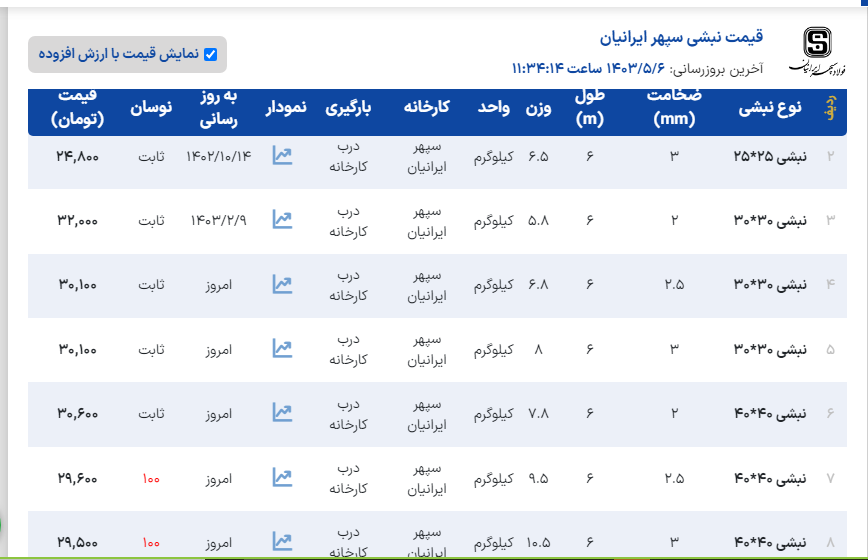 #فولاد_آذر_نبش 🔸نبشی ۲/۵*۴: ۲۹۴۰۰۰﷼ 🔸نبشی ۳*۴: ۲۹۲۰۰۰﷼ 🔸نبشی ۴*۴: ۲۹۰۰۰۰﷼ 🔸نبشی ۳*۵ : ۲۸۹۰۰۰﷼ 🔸نبشی۳/۵*۵: ۲۸۹۰۰۰﷼ 🔸نبشی۴*۵: ۲۸۸۰۰۰﷼ 🔸نبشی۴/۵*۵: ۲۸۸۰۰۰﷼ 🔸نبشی۵*۵ : ۲۸۸۰۰۰﷼ ✅تخفیف پای آدرس ☎️ 041-37731232 📱 0914-4222215 #آراد_فولاد_آذربایجان https://t.me/afa_steel