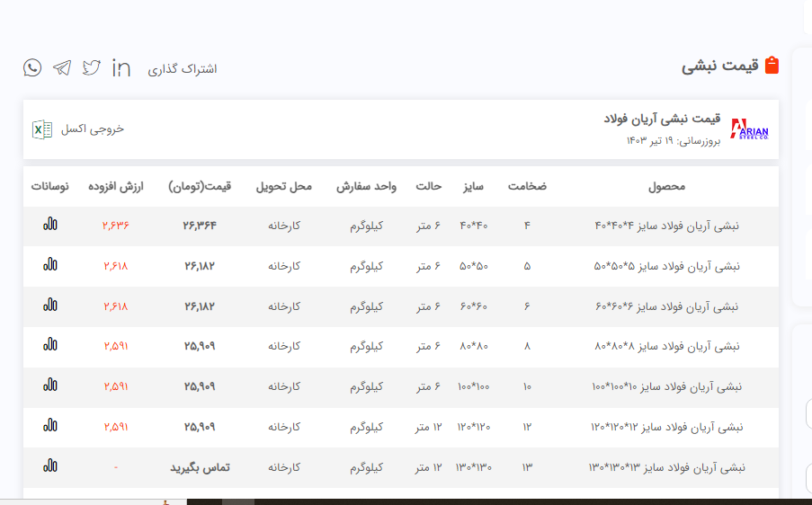 آذین سپهر الوند💫 #ناودانی 💯 🟣سایز80*80 ضخامت5 حالت6 متری محل تحویل کارخانه 🟣سایز90*90 ضخامت5 حالت6 متری محل تحویل کارخانه 🟣سایز100*100ضخامت5حالت6متری محل تحویل کارخانه 🟣سایز120*120ضخامت5 حالت6متری محل تحویل کارخانه 🟣سایز140*140ضخامت 5حالت6متری محل تحویل کارخانه 🟣سایز100*100ضخامت6حالت6متری محل تحویل کارخانه 🟣سایز120*120 ضخامت6حالت6متری محل تحویل کارخانه 🟣سایز60*120 ضخامت 6حالت6متری محل تحویل کارخانه 🟣سایز140*140ضخامت6حالت6 متری محل تحویل کارخانه 🟣سایز250*150ضخامت6حالت6 متری محل تحویل کارخانه ❗️به دلیل نوسانات بازار برای تایید موجودی و قیمت ها تماس بگیرید ❗️ کانال تلگرام 🤳 https://t.me/azinsepehralvand سایت🌐 www.azinsepehrco.com ☎️☎️☎️☎️☎️☎️ 📞09132381828 📞09394117828 📞03152467528 https://t.me/azinsepehralvan