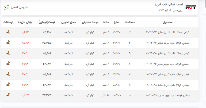 📢#نبشی_جاوید_بناب 🗓سه شنبه 1403/04/19 🚛بارگیری #کارخانه 🔸ثابت نبشی 3*40 سبک ↔️ 30500 تومان نبشی 3*40 ↔️ 29500 تومان ✅ مشاهده ادامه لیست قیمت ها: ahanlands.com/manufacturer/جاوید-بناب/ 🔴فروش با تایید موجودی قیمت می باشد🔴 🔴 قیمت نهایی هنگام اخذ آدرس 🔴 ✅ جهت خرید، مشاوره و ارتباط با کارشناسان فروش: https://zil.ink/ahanland ☎️ 021 910 10 666 ☎️ 061 53 222 100 🆔 @ahanland