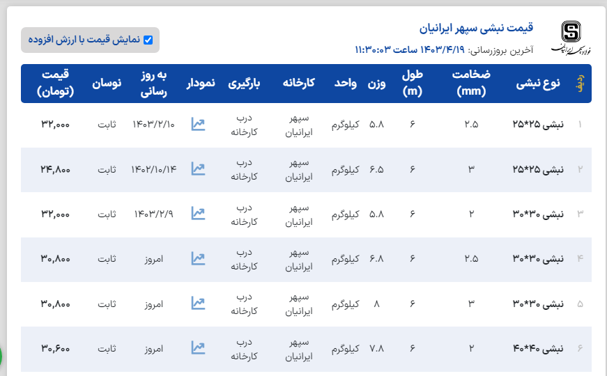 #نبض_آهن 📣تهیه و توزیع انواع آهن آلات صنعتی و ساختمانی 💠ورقهای روغنی، گالوانیزه، سیاه و اسیدشویی،استیل و آلومینیوم ✔️انواع میلگرد آجدار و ساده ✔️تیرآهن،ناودانی، نبشی،قوطی پروفیل، لوله #جهت_مشاهده_پروفایل_نبض_آهن👇 🪐https://foolad24.com/profile/13074 #جهت_مشاهده_اعلام_موجودی_نبض_آهن https://foolad24.com/profile/13074/inventory کسب اطلاعات بیشتر و ثبت سفارش تماس با تلفن : ☎️021_52622 📞021_91010711 🔠https://t.me/nabzahan 🪐https://nabzeahan.com/