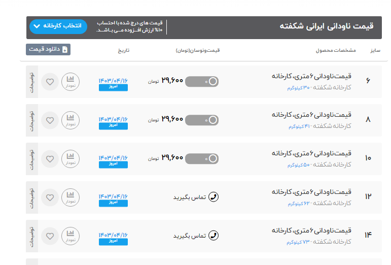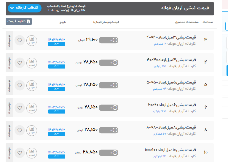 تاریخ: 1403/04/16 ⚡️ لیست موجودی #نبشی و #ناودانی ⚡️ 📍 تحویل: #انبار_تهران #نبشی نبشی ۳ سبک⬅️ ۳۰۱۰۰۰ نبشی ۳ سنگین⬅️ ۳۰۱۰۰۰ نبشی ۴ سبک⬅️ ۲۹۵۰۰۰ نبشی ۴ سنگین⬅️ ۲۹۱۰۰۰ نبشی ۵ سبک⬅️ ۲۹۰۰۰۰ نبشی ۵ سنگین⬅️ ۲۹۰۰۰۰ نبشی ۶ سبک⬅️ ۲۹۱۰۰۰ نبشی ۶ سنگین ⬅️ ۲۹۱۰۰۰ نبشی ۷⬅️ ۳۰۰۰۰۰ نبشی ۸ سبک⬅️ call نبشی ۸ سنگین⬅️ ۲۸۹۰۰۰ نبشی ۱۰ سبک⬅️ call نبشی ۱۰ سنگین⬅️ ۲۸۷۰۰۰ نبشی ۱۲ سبک⬅️ call نبشی ۱۲ سنگین⬅️ ۲۹۷۰۰۰ #ناودانی ناودانی ۶ سبک⬅️ ۳۱۰۰۰۰ ناودانی ۶ سنگین⬅️ ۳۱۰۰۰۰ ناودانی ۸ سبک⬅️ ۳۰۷۰۰۰ ناودانی ۸ سنگین⬅️ ۳۰۵۰۰۰ ناودانی ۱۰ سبک⬅️ ۳۰۷۰۰۰ ناودانی ۱۰ سنگین⬅️ ۳۰۵۰۰۰ ناودانی ۱۲ سبک⬅️ ۳۱۰۰۰۰ ناودانی ۱۲ سنگین⬅️ ۳۰۵۰۰۰ ناودانی ۱۴ سنگین⬅️ ۳۱۰۰۰۰ ناودانی ۱۶ سنگین⬅️ ۳۱۷۰۰۰ ناودانی ۱۸ سبک⬅️ call #سپری سپری ۳⬅️ ۳۱۶۰۰۰ سپری ۴⬅️ ۳۰۵۰۰۰ سپری ۵⬅️ ۳۰۵۰۰۰ سپری ۶⬅️ ۳۱۰۰۰۰ ☎️ 1836 ☎️ 021-6299 9080 📞(داخلی 630) 🆔 @MahdeFoolad