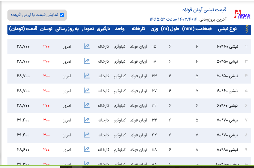 " فولاد جاوید بناب " با سلام و عرض ادب *قیمت روز شنبه ۱۴۰۳/۰۴/۱۶ 🔹نبشی 40*3 سبک : ۳۰۵۰۰۰ ریال 🔹نبشی 40*3 : ۲۹۵۰۰۰ ریال 🔹نبشی 40*4 سبک : ۲۹۵۰۰۰ ریال 🔹نبشی 40*4 : ۲۹۵۰۰۰ ریال 🔹نبشی 50*3 سبک : ۳۰۵۰۰۰ ریال 🔹نبشی 50*3 : ۲۹۵۰۰۰ ریال 🔹نبشی 50*4 سبک : ۲۹۵۰۰۰ ریال 🔹نبشی 50*4 : ۲۹۵۰۰۰ ریال 🔹نبشی 50*5 سبک : ۲۹۵۰۰۰ ریال 🔹نبشی 50*5 : ۲۹۵۰۰۰ ریال 🔹نبشی 60*3 : ۳۰۵۰۰۰ ریال 🔹نبشی 60*4 : ۲۹۵۰۰۰ ریال 🔹نبشی 60*5 : ۲۹۵۰۰۰ ریال 041-37780433-6 t.me/javidsteel_bonab www.javidsteel.co Telegram فولاد جاوید بناب فولاد جاوید بناب تولیدکننده انواع نبشی ومقاطع فولادی