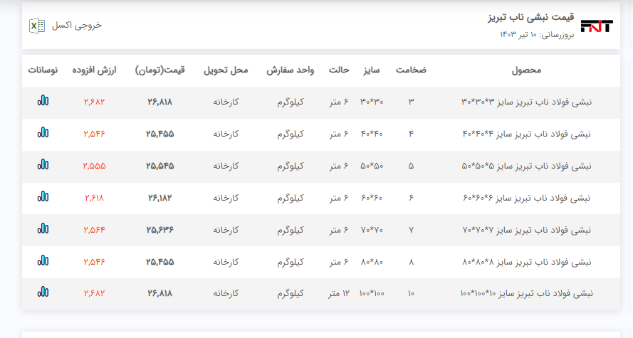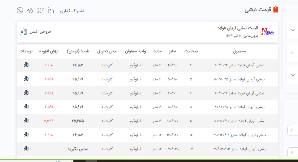 آذین سپهر الوند💫 #ناودانی 💯 🟣سایز80*80 ضخامت5 حالت6 متری محل تحویل کارخانه 🟣سایز90*90 ضخامت5 حالت6 متری محل تحویل کارخانه 🟣سایز100*100ضخامت5حالت6متری محل تحویل کارخانه 🟣سایز120*120ضخامت5 حالت6متری محل تحویل کارخانه 🟣سایز140*140ضخامت 5حالت6متری محل تحویل کارخانه 🟣سایز100*100ضخامت6حالت6متری محل تحویل کارخانه 🟣سایز120*120 ضخامت6حالت6متری محل تحویل کارخانه 🟣سایز60*120 ضخامت 6حالت6متری محل تحویل کارخانه 🟣سایز140*140ضخامت6حالت6 متری محل تحویل کارخانه 🟣سایز250*150ضخامت6حالت6 متری محل تحویل کارخانه ❗️به دلیل نوسانات بازار برای تایید موجودی و قیمت ها تماس بگیرید ❗️ کانال تلگرام 🤳 https://t.me/azinsepehralvand سایت🌐 www.azinsepehrco.com ☎️☎️☎️☎️☎️☎️ 📞09132381828 📞09394117828 📞03152467528 https://t.me/azinsepehralvan