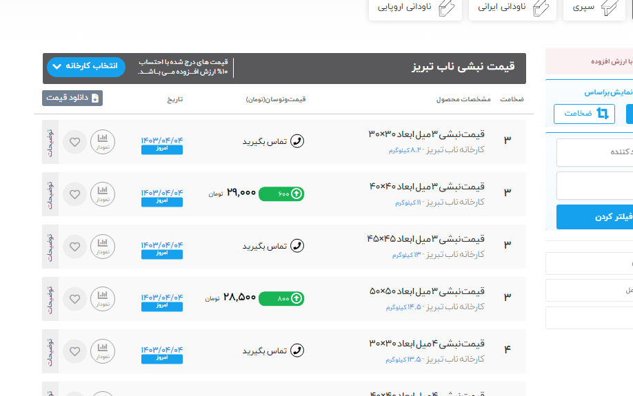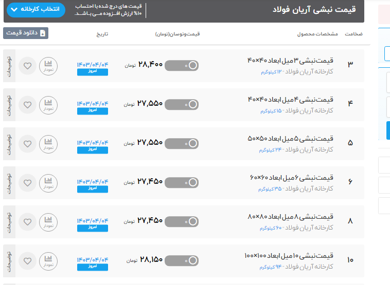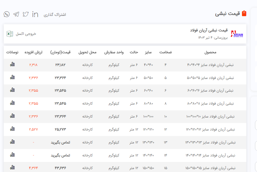 نبشی و ناودانی | اعلام موجودی و قیمت‌ها - فولاد 24