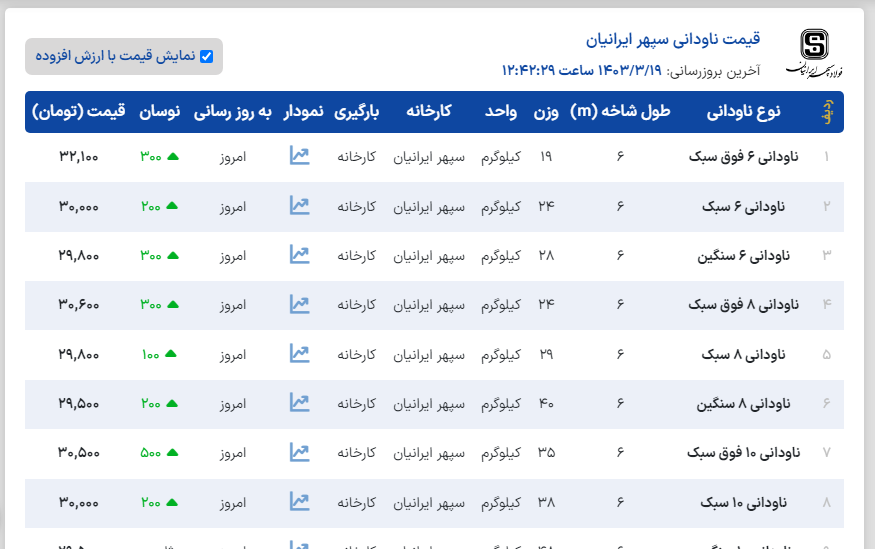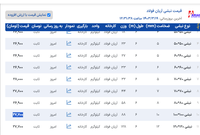 آذین سپهر الوند💫 #ناودانی 💯 🟣سایز80*80 ضخامت5 حالت6 متری محل تحویل کارخانه 🟣سایز90*90 ضخامت5 حالت6 متری محل تحویل کارخانه 🟣سایز100*100ضخامت5حالت6متری محل تحویل کارخانه 🟣سایز120*120ضخامت5 حالت6متری محل تحویل کارخانه 🟣سایز140*140ضخامت 5حالت6متری محل تحویل کارخانه 🟣سایز100*100ضخامت6حالت6متری محل تحویل کارخانه 🟣سایز120*120 ضخامت6حالت6متری محل تحویل کارخانه 🟣سایز60*120 ضخامت 6حالت6متری محل تحویل کارخانه 🟣سایز140*140ضخامت6حالت6 متری محل تحویل کارخانه 🟣سایز250*150ضخامت6حالت6 متری محل تحویل کارخانه ❗️به دلیل نوسانات بازار برای تایید موجودی و قیمت ها تماس بگیرید ❗️ کانال تلگرام 🤳 https://t.me/azinsepehralvand سایت🌐 www.azinsepehrco.com ☎️☎️☎️☎️☎️☎️ 📞09132381828 📞09394117828 📞03152467528 https://t.me/azinsepehralvan