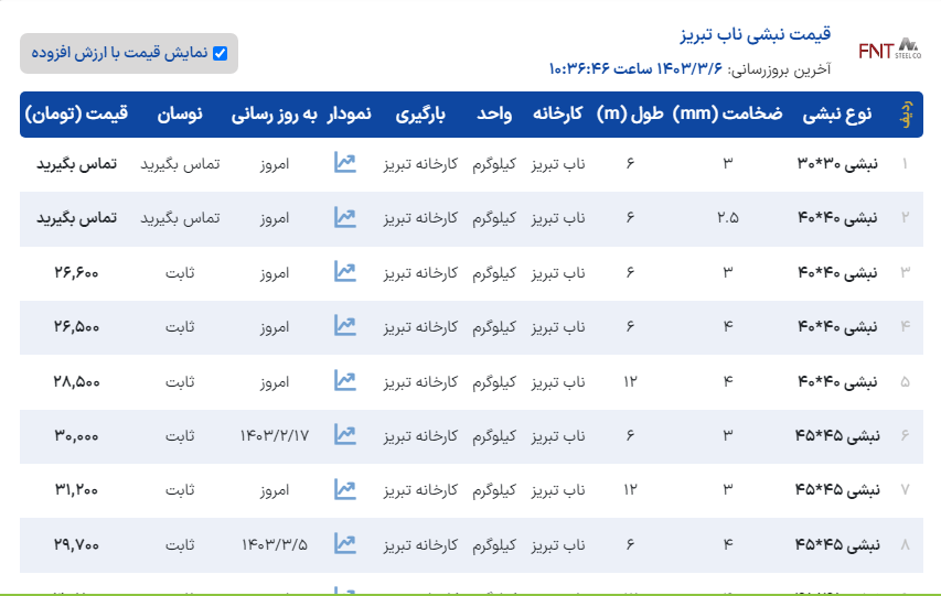 #نبض_آهن 📣تهیه و توزیع انواع آهن آلات صنعتی و ساختمانی 💠ورقهای روغنی، گالوانیزه، سیاه و اسیدشویی،استیل و آلومینیوم ✔️انواع میلگرد آجدار و ساده ✔️تیرآهن،ناودانی، نبشی،قوطی پروفیل، لوله #جهت_مشاهده_پروفایل_نبض_آهن👇 🪐https://foolad24.com/profile/13074 #جهت_مشاهده_اعلام_موجودی_نبض_آهن https://foolad24.com/profile/13074/inventory کسب اطلاعات بیشتر و ثبت سفارش تماس با تلفن : ☎️021_52622 📞021_91010711 🔠https://t.me/nabzahan 🪐https://nabzeahan.com/