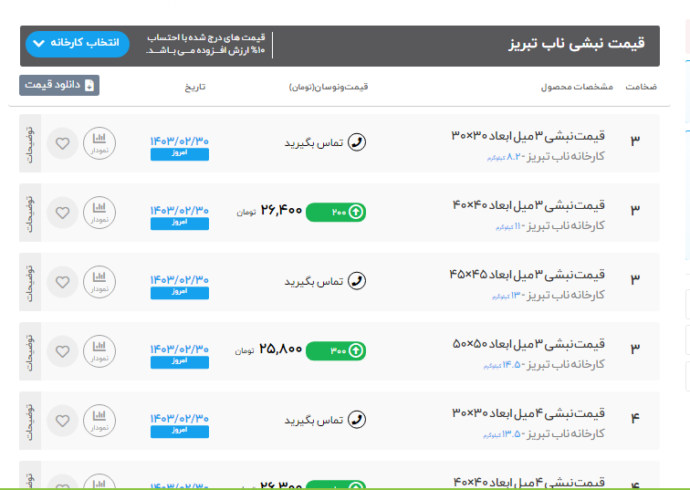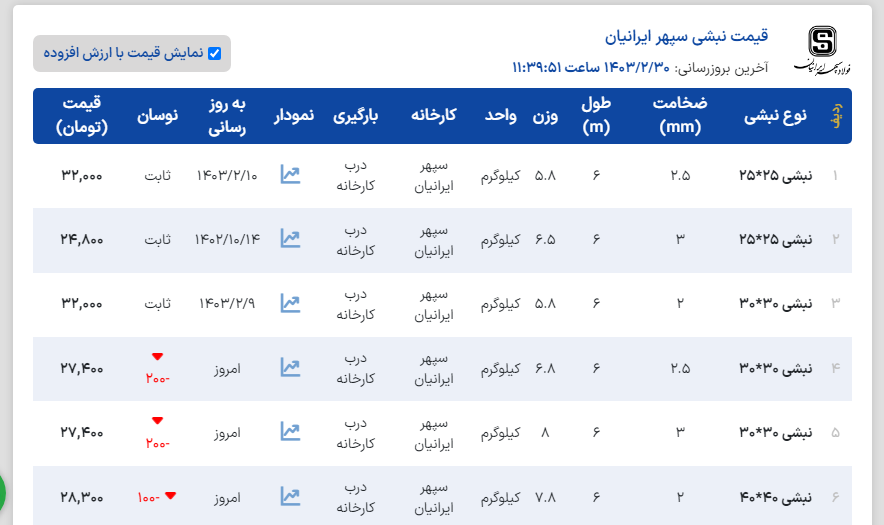 " فولاد جاوید بناب " با سلام و عرض ادب *قیمت روز یکشنبه ۱۴۰۳/۰۲/۳۰ 🔹نبشی 40*3 سبک : ۲۹۲۰۰۰ ریال 🔹نبشی 40*3 : ۲۸۲۰۰۰ ریال 🔹نبشی 40*4 سبک : ۲۸۲۰۰۰ ریال 🔹نبشی 40*4 : ۲۸۲۰۰۰ ریال 🔹نبشی 50*3 سبک : ۲۹۲۰۰۰ ریال 🔹نبشی 50*3 : ۲۸۲۰۰۰ ریال 🔹نبشی 50*4 سبک : ۲۸۲۰۰۰ ریال 🔹نبشی 50*4 : ۲۸۲۰۰۰ ریال 🔹نبشی 50*5 سبک : ۲۸۲۰۰۰ ریال 🔹نبشی 50*5 : ۲۸۲۰۰۰ ریال 🔹نبشی 60*3 : ۲۹۲۰۰۰ ریال 🔹نبشی 60*4 : ۲۸۲۰۰۰ ریال 🔹نبشی 60*5 : ۲۸۲۰۰۰ ریال 041-37780433-6 t.me/javidsteel_bonab www.javidsteel.co Telegram فولاد جاوید بناب فولاد جاوید بناب تولیدکننده انواع نبشی ومقاطع فولادی