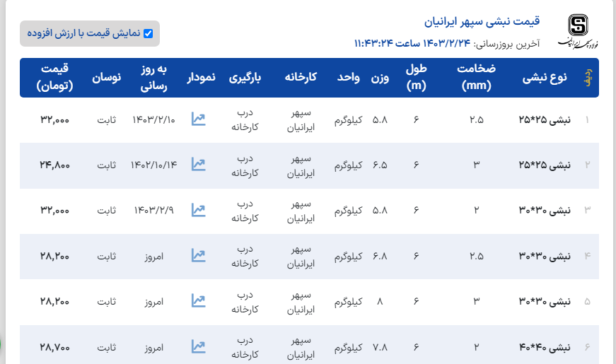 " فولاد جاوید بناب " با سلام و عرض ادب *قیمت روز سه شنبه ۱۴۰۳/۰۲/۲۵ 🔹نبشی 40*3 سبک : ۲۹۲۰۰۰ ریال 🔹نبشی 40*3 : ۲۸۲۰۰۰ ریال 🔹نبشی 40*4 سبک : ۲۸۲۰۰۰ ریال 🔹نبشی 40*4 : ۲۸۲۰۰۰ ریال 🔹نبشی 50*3 سبک : ۲۹۲۰۰۰ ریال 🔹نبشی 50*3 : ۲۸۲۰۰۰ ریال 🔹نبشی 50*4 سبک : ۲۸۲۰۰۰ ریال 🔹نبشی 50*4 : ۲۸۲۰۰۰ ریال 🔹نبشی 50*5 سبک : ۲۸۲۰۰۰ ریال 🔹نبشی 50*5 : ۲۸۲۰۰۰ ریال 🔹نبشی 60*3 : ۲۹۲۰۰۰ ریال 🔹نبشی 60*4 : ۲۸۲۰۰۰ ریال 🔹نبشی 60*5 : ۲۸۲۰۰۰ ریال 041-37780433-6 t.me/javidsteel_bonab www.javidsteel.co Telegram فولاد جاوید بناب فولاد جاوید بناب تولیدکننده انواع نبشی ومقاطع فولادی