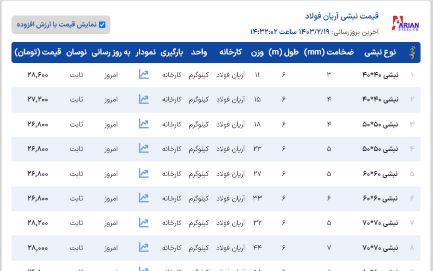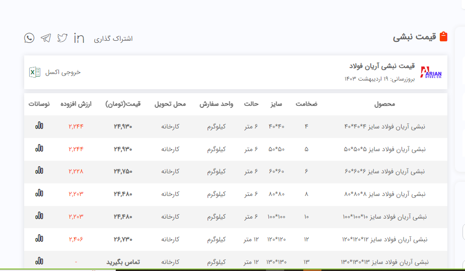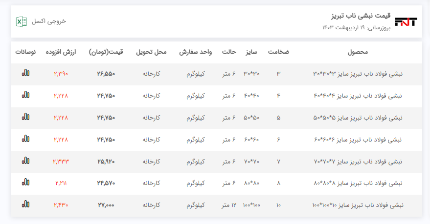 نبشی و ناودانی | اعلام موجودی و قیمت‌ها - فولاد 24