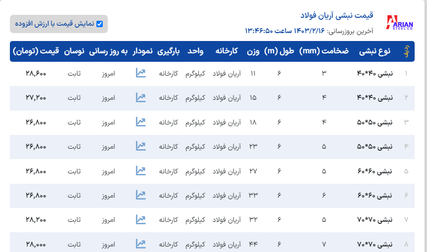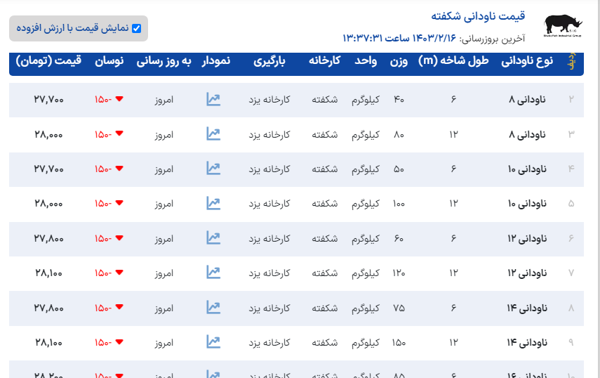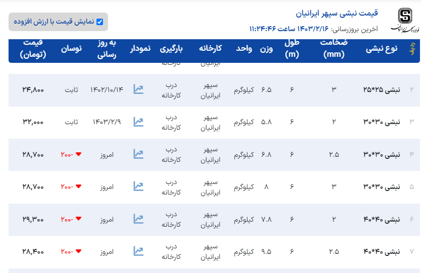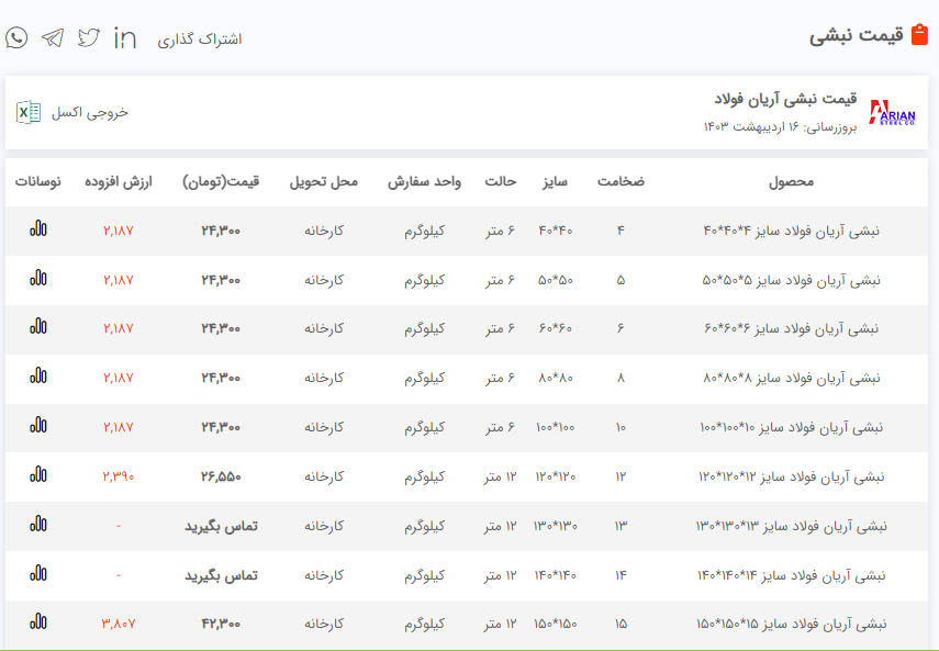 آهن بازار, 📋 لیست قیمت #وال_پست بروزرسانی شد. 🗓یکشنبه 16 اردیبهشت 1403 وال پست 15*40 قیمت: 90000 تومان وال پست 15*20 قیمت: 50000 تومان وال پست 10*40 قیمت: 75000 تومان وال پست 10*20 قیمت: 42000 تومان وال پست 15*300 قیمت: 670000 تومان وال پست 10*300 قیمت: 570000 تومان جهت اطلاع از آخرین تغیررات #وال_پست به آدرس اینترنتی زیر مراجعه نمایید: https://ahanbazar.com/product-category/wallpost-rebbar/wallpost/ 🔵 Website www.ahanbazar.com ⚫️Telegram : @ahanbaazar 🔴 Instagram : https://instagram.com/ahanbazar ☎️ تلفن : 021 - 55445622 021 - 55445623 🔶 تهران - اتوبان آزادگان - بازار آهن مکان - خ ششم غربی - پلاک 1622 📉📈 به علت نوسانات قیمت در بازارآهن، در صورت اقدام به خرید, گرفتن تأییدیه قیمت از دفتر فروش #آهن_بازار الزامی میباشد.