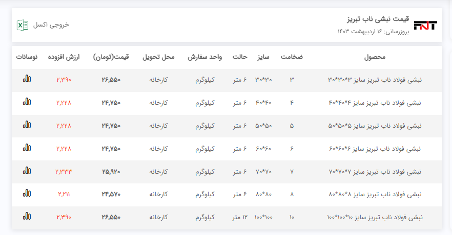 📆 یکشنبه 16 ارديبهشت 1403 ◼️پرگاس آهن ◼️نبشی کوهپایه ♦️ نبشي 3*30*30 فولاد اسپیرال (کوهپایه) اصفهان : 28,020 تومان ♦️ نبشي 3*40*40 فولاد اسپیرال (کوهپایه) اصفهان : 27,920 تومان ☎️ 02191006808 📱09135400057