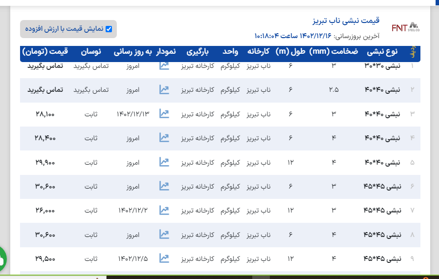 #آریان_فولاد نبشی 3*۴ »»»286000««« نبشی ۴*۴ »»»286000««« نبشی ۴*۵ »»276000««« نبشی ۵*۵ »»»———««« نبشی ۶*۶ »»» 273000««« نبشی ۷*۷ »»286000««« نبشی ۸*۸»»»273000««« نبشی ۱۰*۱۰ «««282000««« نبشی ۱۲*۱۲ »»282000««« نبشی ۱۵*۱۵ »» call ««« #آریان_فولاد 🟩🟩🟩 ✅کلیه محصولات ذکر شده دارای تاییده موجودی و قیمت میباشند. ❇️برای ثبت سفارش خود تماس حاصل فرمایید. ✅با فاکتور رسمی 🔱آهن آلات مجید حیدری🔱 ☎️021-55446006-9 📱09121168151