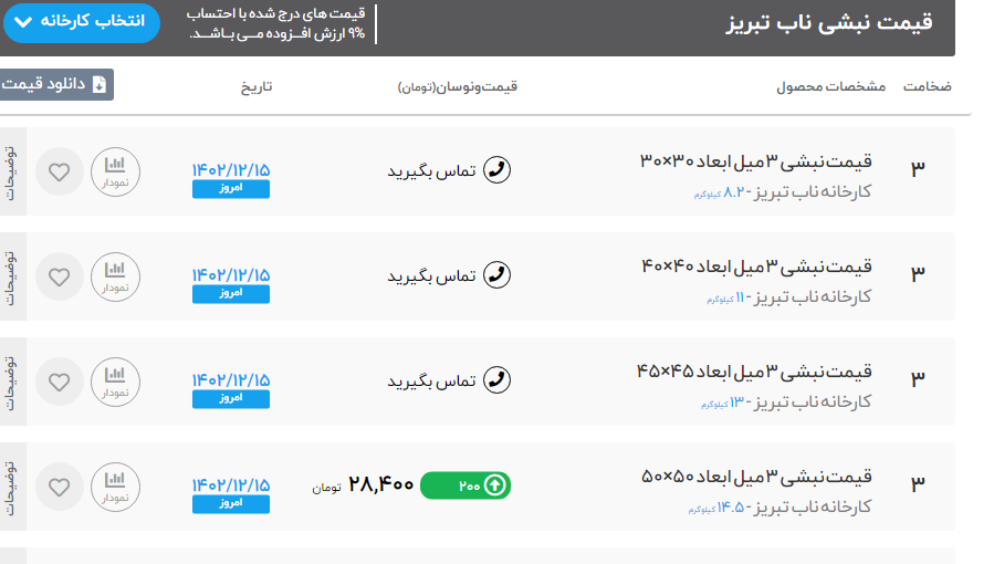 سهشنبه ۱۵ / اسفند / ۱۴۰۲ 🗓 ▪️استعلام قیمت با تماس تلفنی▪️ ❇️تمامی محصولات با فاکتور رسمی ✨موجودی نبشی انبار تهران 🟥نبشی ۳ اسپیرال اصفهان ( ۸ ك) ✅نبشی ۳ شکفته سنگین ( ۸ ك) ✅نبشی ۳ آی هان تهران ( ۷ ك) ✅نبشی ۳ نستا ( ۷ ك) ✅نبشی ۳ سپهر ( ۷ ك) ✅نبشی ۴ اسپیرال اصفهان ( ۱۴ ك) ✅نبشی ۴ شکفته ( ۱۰/۵ ك) ✅نبشی ۴ شکفته سنگین( ۱۴ ك) ✅نبشی ۴ فولاد پارسه ( ۹ ك) ✅نبشی ۴ فولاد سپهر ( ۹ ك) ✅نبشی ۴ نستا ( ۹/۵ ك) ✅نبشی ۴ نستا سبک ( ۸ ك) ✅نبشی ۴ ابهر ( ۱۴ ك) ✅نبشی ۴ آریان فولاد ( ۱۴ ك) ✅نبشی ۵ گ۳ شکفته ( ۱۵ ك) ✅نبشی ۵ گ ۴ زنجان ( ۱۸ ك) ✅نبشی ۵ گ ۵ زنجان ( ۲۲ ك) ✅نبشی ۵ گ ۴ آریان فولاد ( ۱۸ ك) ✅نبشی ۵ آریان فولاد ( ۲۲ ك) ✅نبشی ۵ گ ۴ ناب تبریز ( ۱۹ ك) ✅نبشی ۵ گ۵ ماهان ( ۲۲ ك) ✅نبشی ۵ گ ۴ ماهان ( ۱۹ ك) ✅نبشی ۶ گ ۵ شکفته ( ۲۷ ك) ✅نبشی ۶ گ ۵ ناب تبریز ( ۲۷ ك) ✅نبشی ۶ گ ۴ ناب تبریز ( ۲۴ ك) ✅نبشی ۶ آریان فولاد ( ۳۲ ك) ✅نبشی ۶ گ ۵ آریان فولاد ( ۲۷ ك) ✅نبشی ۶ زنجان ( ۳۱ ك) ✅نبشی ۶ گ۴ زنجان ( ۲۳ ك) ✅نبشی ۶ گ۵ زنجان ( ۲۷ ك) ✅نبشی ۷ آریان فولاد ( ۴۴ ك) ✅نبشی ۸ گ۷ شکفته ( ۵۰ ك) ✅نبشی ۸ آریان فولاد ( ۵۶ ك) ✅نبشی ۸ فولاد اشتهارد ( ۵۶ ك) ✅نبشی ۸ حافظ یزد ( ۵۶ ك) ✅نبشی ۸ سدید قم ( ۵۶ ك) ✅نبشی ۸ آونگان ( ۸۰ ك) ✅نبشی ۱۰ شکفته ( ۸۰ ك) ✅نبشی ۱۰ آریان فولاد ( ۸۸ ك) ✅نبشی۱۰ اشتهارد ( ۸۶ ك) ✅نبشی ۱۰ نورد آریا تابان ( ۸۸ ك) ✅نبشی۱۰ حافظ یزد ( ۸۳ ك) ✅نبشی۱۰ گ۸ اشتهارد ( ۷۵ ك) ✅نبشی۱۰ آونگان ( ۸۵ ك) ✅نبشی ۱۲ شکفته ( ۱۲۵ ك) ✅نبشی ۱۲ آریان فولاد ( ۱۳۳ ك) ✅نبشی ۱۲ صبا استیل ( ۱۲۳ ك) ✅نبشی ۱۲ آونگان ( ۱۲۸ ك)
