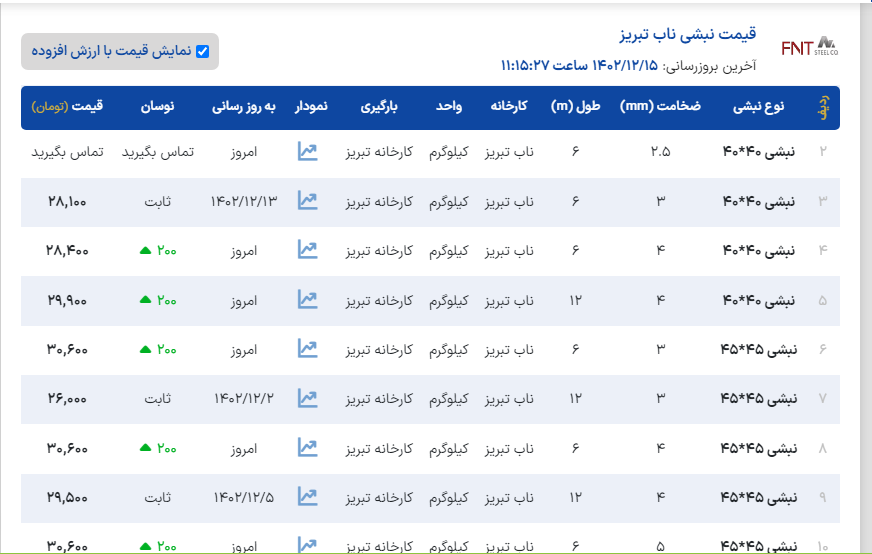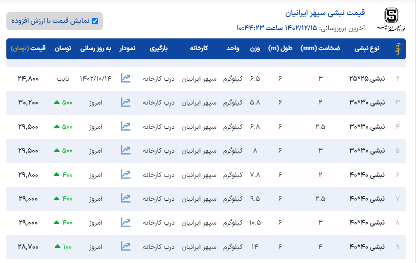 نبشی و ناودانی | اعلام موجودی و قیمت‌ها - فولاد 24