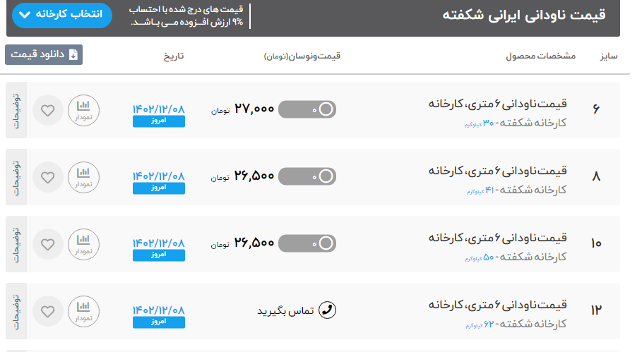 چهارشنبه 9 اسفند 1402 ◼️پرگاس آهن ◼️ناودانی شکفته ♦️ ناودانی 6 وزن 30 :26450 تومان ♦️ ناودانی 8 وزن 40 :26500 تومان ♦️ ناودانی 8 وزن 80 :26700 تومان ♦️ ناودانی 10 وزن 50 :26500 تومان ♦️ ناودانی 10 وزن 100 :26700 تومان ♦️ ناودانی 12 وزن 60 : 26800 تومان ♦️ ناودانی 12 وزن 120 : 26950 تومان ♦️ ناودانی 14 وزن 75 : 26800 تومان ♦️ ناودانی 14 وزن 150 : 26950 تومان ♦️ ناودانی 16 وزن 85 : 26800 تومان ♦️ ناودانی 16 وزن 170 : 26950 تومان ◼️کارخانه مشهد ♦️ ناودانی 6 وزن 30 : 26450 تومان ♦️ ناودانی 6 وزن 60 : 26600 تومان ♦️ ناودانی 6.5 وزن 35 :25400 تومان ♦️ ناودانی 8 وزن 41 : 26500 تومان ♦️ ناودانی 8 وزن 80 :26700 تومان ♦️ ناودانی 10 وزن 50 : 26500 تومان ♦️ ناودانی 10 وزن 100 : 26700 تومان ☎️ 02191006808 📱09135400057 پیج ما در اینستا https://www.instagram.com/tv/CeISF1ED973/?igshid=YmMyMTA2M2Y= استعلام قیمت پرگاس آهن دریافت آخرین قیمت واخبارآهنآلات 🌐https://pergasahan.com
