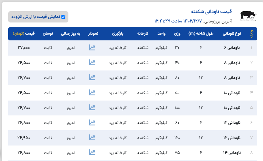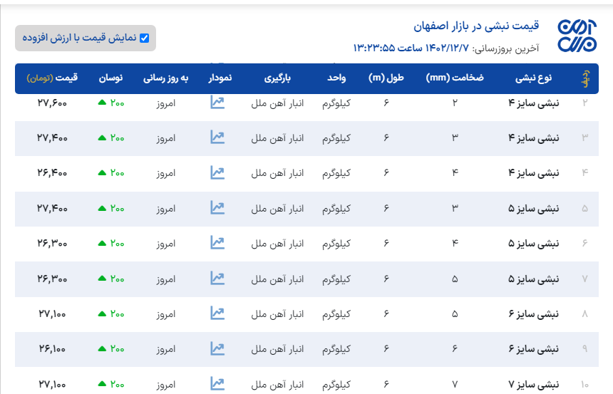 سه شنبه 8 اسفند 1402 ◼️پرگاس اهن ◼️نبشی آریان فولاد ♦️نبشی 3*40*40 : 26800 تومان ♦️نبشی 4*40*40 : 25900 تومان ♦️نبشی 4*50*50 : 25400 تومان ♦️نبشی 5*50*50 : 25400 تومان ♦️نبشی 5*60*60 : 25400 تومان ♦️نبشی 6*60*60 : 25400 تومان ♦️نبشی 5*70*70 : 25900 تومان ♦️نبشی 7*70*70 : 25900 تومان ♦️نبشی 8*80*80 : 25400 تومان ♦️نبشی 10*100*100 : 26100 تومان ♦️نبشی 12*120*120 : 26100 تومان ☎️ 02191006808 📱09135400057 پیج ما در اینستا https://www.instagram.com/tv/CeISF1ED973/?igshid=YmMyMTA2M2Y= استعلام قیمت پرگاس آهن دریافت آخرین قیمت واخبارآهنآلات 🌐https://pergasahan.com