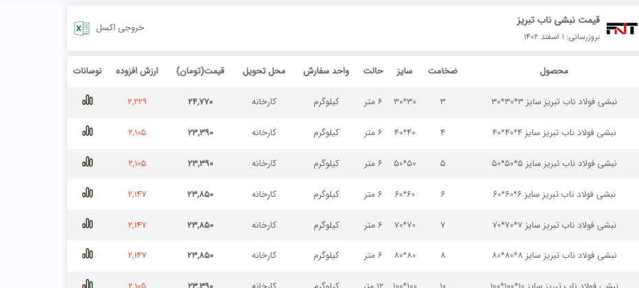 نبشی و ناودانی | اعلام موجودی و قیمت‌ها - فولاد 24